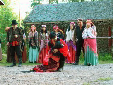 Mustalaisleirin tekijät ovat suurimmaksi osaksi samat kuin Viulunsoittajan tiimi kesällä 2002. Työryhmä käsittää lähes 50 näyttelijää, muusikkoa ja avustajaa.