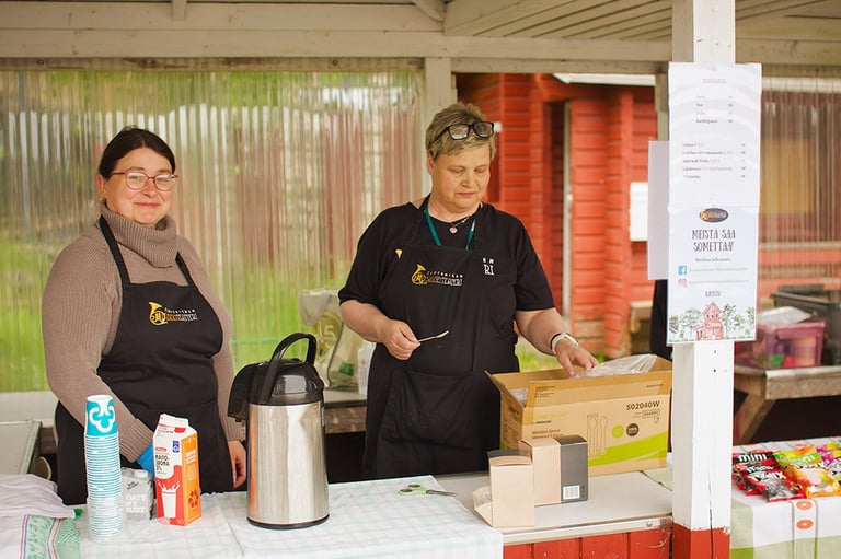 Kahvio: Liisa Pietikäinen, Johanna Klemelä, Mia Manninen ja talkoolaiset